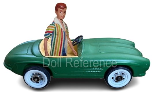The Mattel Allan doll is named after Barbara Handler, who is the Mattel founders daughter, real husband Allan Segal. Only one Mattel vinyl case shows a graphic of both Barbie and Allan together and another case shown below, only has the Allan doll – both are high valued vinyl cases. Allan, like Barbie and Ken had a hot vehicle to travel in, it was a 1965 green Mercedes-Benz roadster car. In the Montgomery Ward’s catalog of 1965 the car was called Skipper dolls sports car, but the original packaging stated “Skipper rides with you . . . in Allan’s new Roadster”. The Segal’s have two children Cheryl and Todd, in the 1960s Allan and Barbara Segal divorced and the Allan doll disappeared from the Mattel doll line in the latter part of 1966, reappearing again in the Barbie line of dolls after 1990.